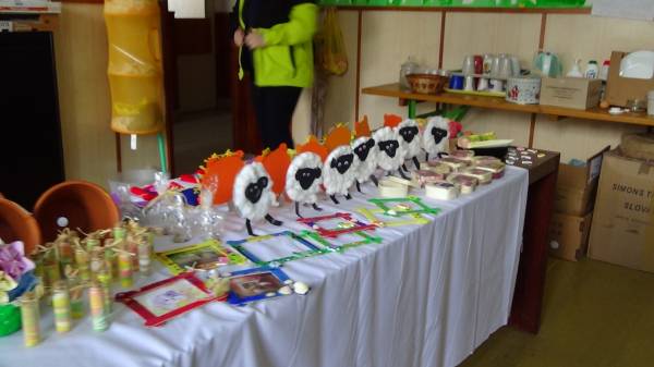 Před představením děti z výtvarného kroužku vystavovali své výrobky ve své klubovně.